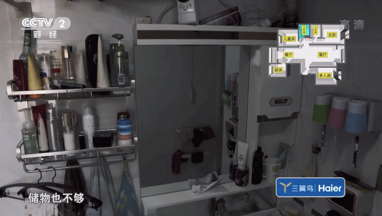 改造前的浴室空间杂物较多,储物空间不足,