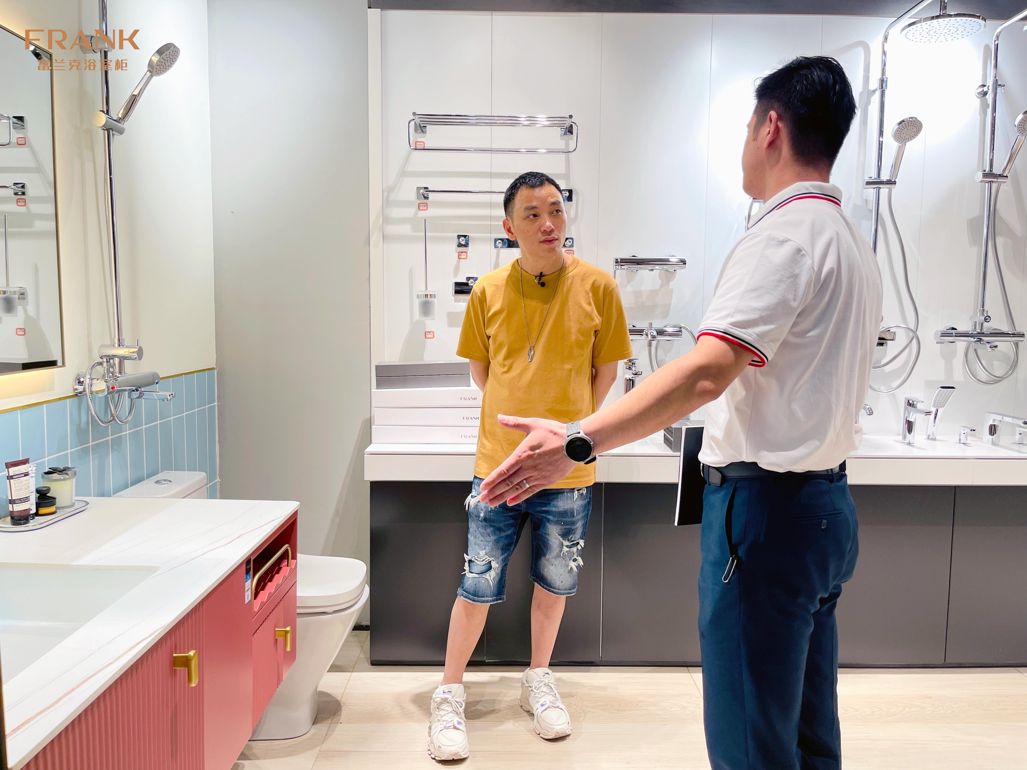 特地来到富兰克浴室柜门店进行产品了解、选材。