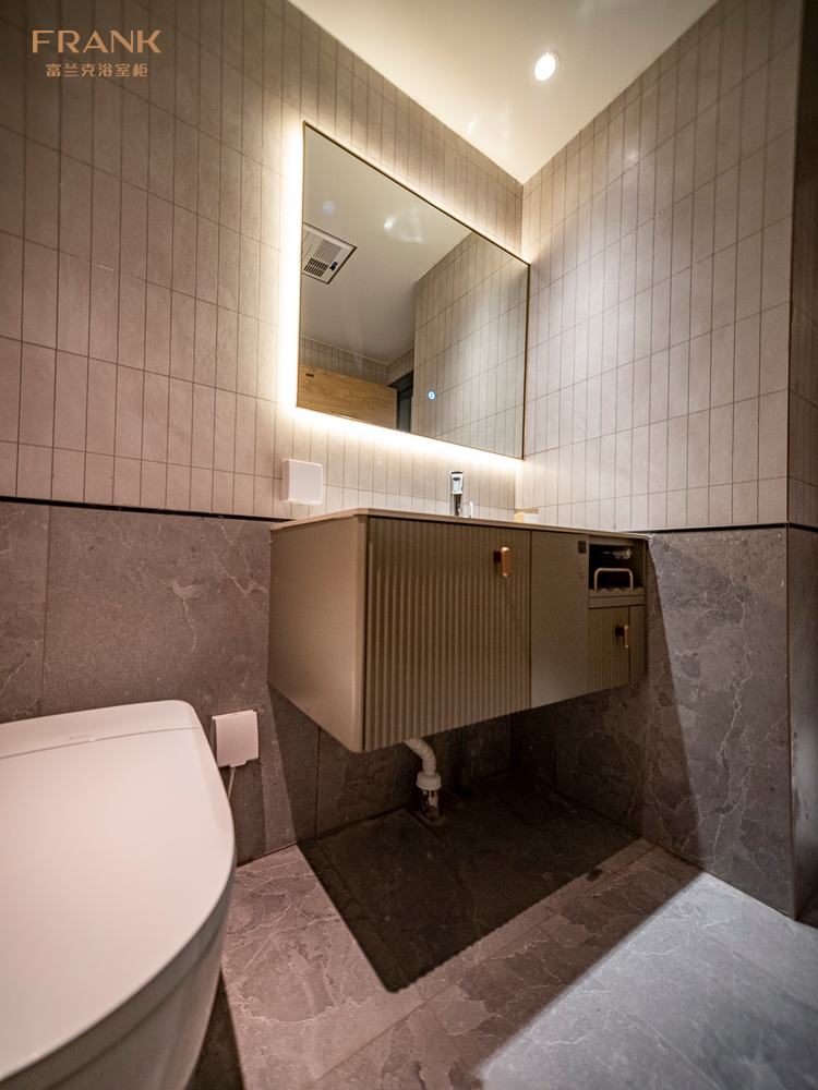 本期案例中,设计师选用了富兰克浴室柜山丘系列岩灰色浴室柜,