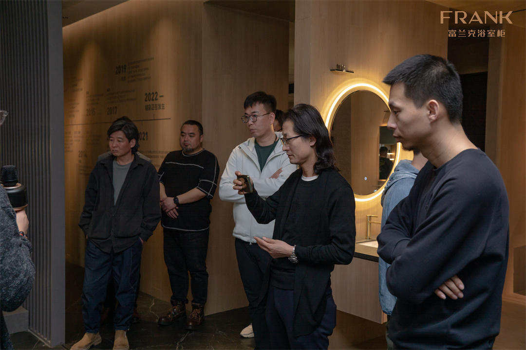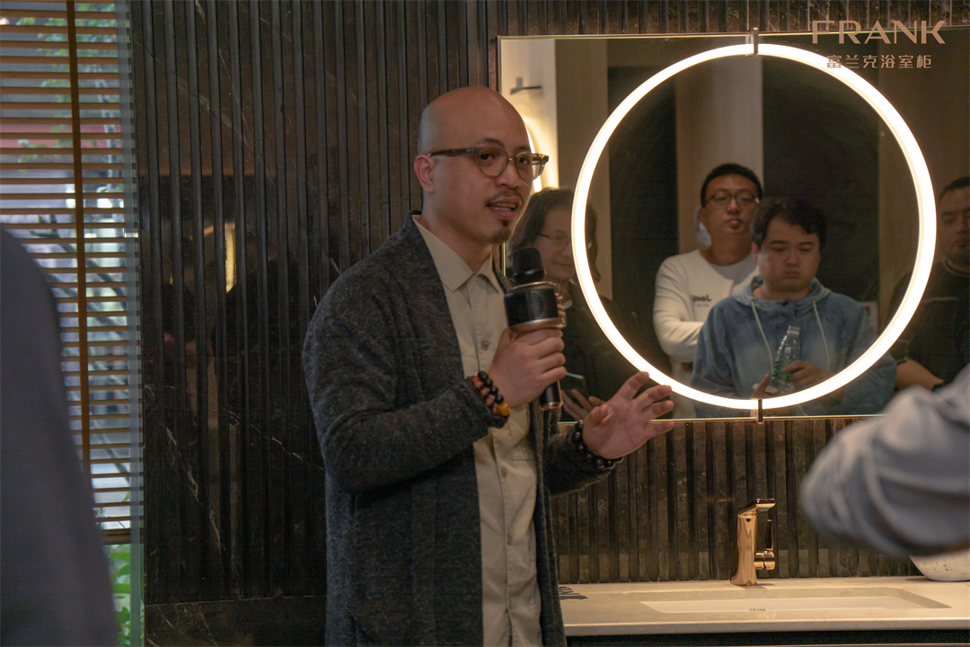 深圳木土可人设计有限公司联合创始人黄耀明应邀分享,现场讲解富兰克产品设计的独到理念与灵感风格,配合展厅真实的产品应用以及精妙的空间语言,富兰克浴室柜独到的气质与匠心得以深入诠释。